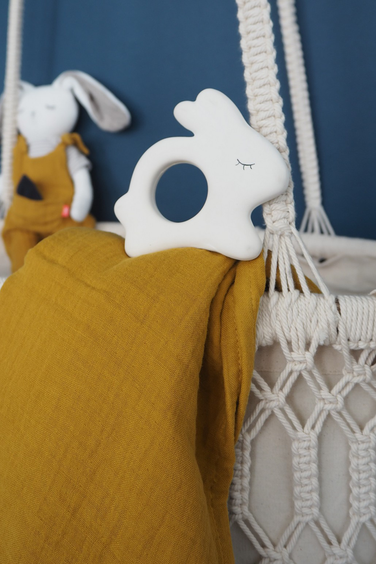 Der Hasen Beißring von Kikadu, hergestellt aus Naturkautschuk, hilft Ihrem Baby nicht nur während des Zahnens, sonders ist auch ein tolles Babyspielzeug.