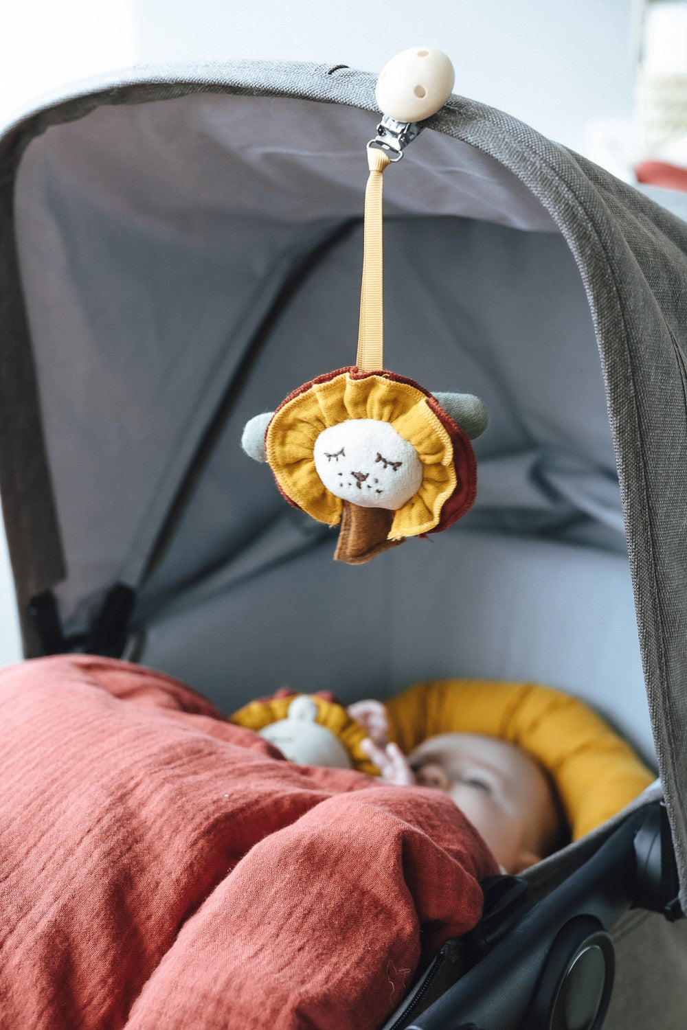 Der süße Clip mit Anhänger von Kikadu kann überall schnell und einfach angebracht werden. Ob am Kinderwagen, an der Spieldecke oder an der Bekleidung, so hat Ihr Kind immer eine Beschäftigung. Der kleine Löwe und der Wüstenbaum baumeln an dem Clip und sorgen für Unterhaltung. Im Inneren des Löwen ist eine kleine Rassel eingearbeitet, diese animiert Ihr Baby zu Greifen. Modell: 2014801 Maße: 18,5 x 2 cm Altersempfehlung: von Geburt an Pflege: Mit feuchtem Tuch reinigen Material: 100% Biobaumwolle