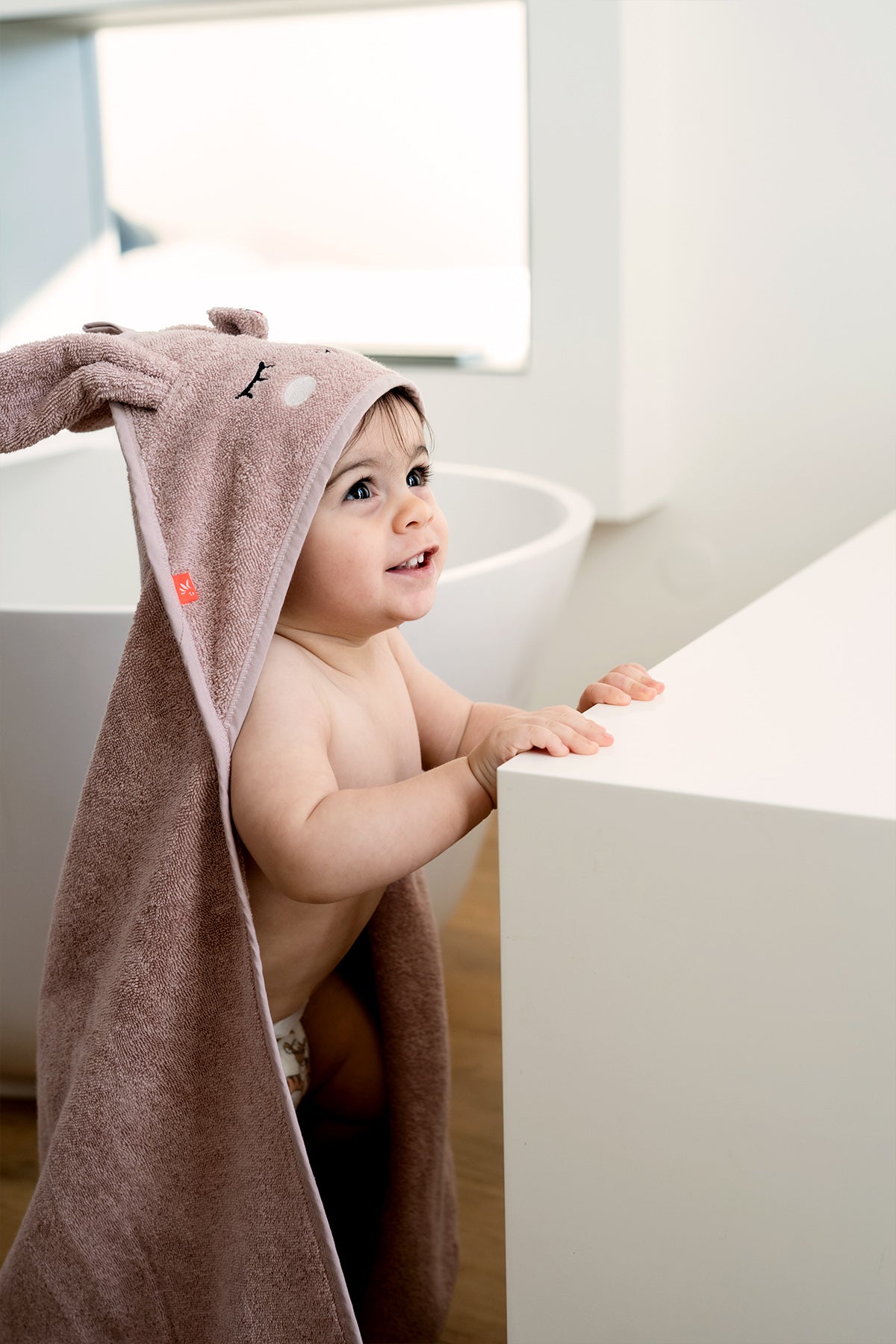 Das niedliche Kapuzenhandtuch von Kikadu, mit dem süßen Hasen-Gesicht eignet sich perfekt, um Ihr Kind nach dem Baden sicher einzuhüllen. Das Handtuch ist zu 100% aus Bio-Baumwolle und dadurch kuschelig weich und hält Dein Kind nach dem Baden angenehm warm. Zertifikat: GOTS-org Herkunftsland: Türkei Abmessung: 80x80cm Pflege: bei 40 Grad waschen EAN/Barcode: 4260711121012 Interne Referenz: 1816115