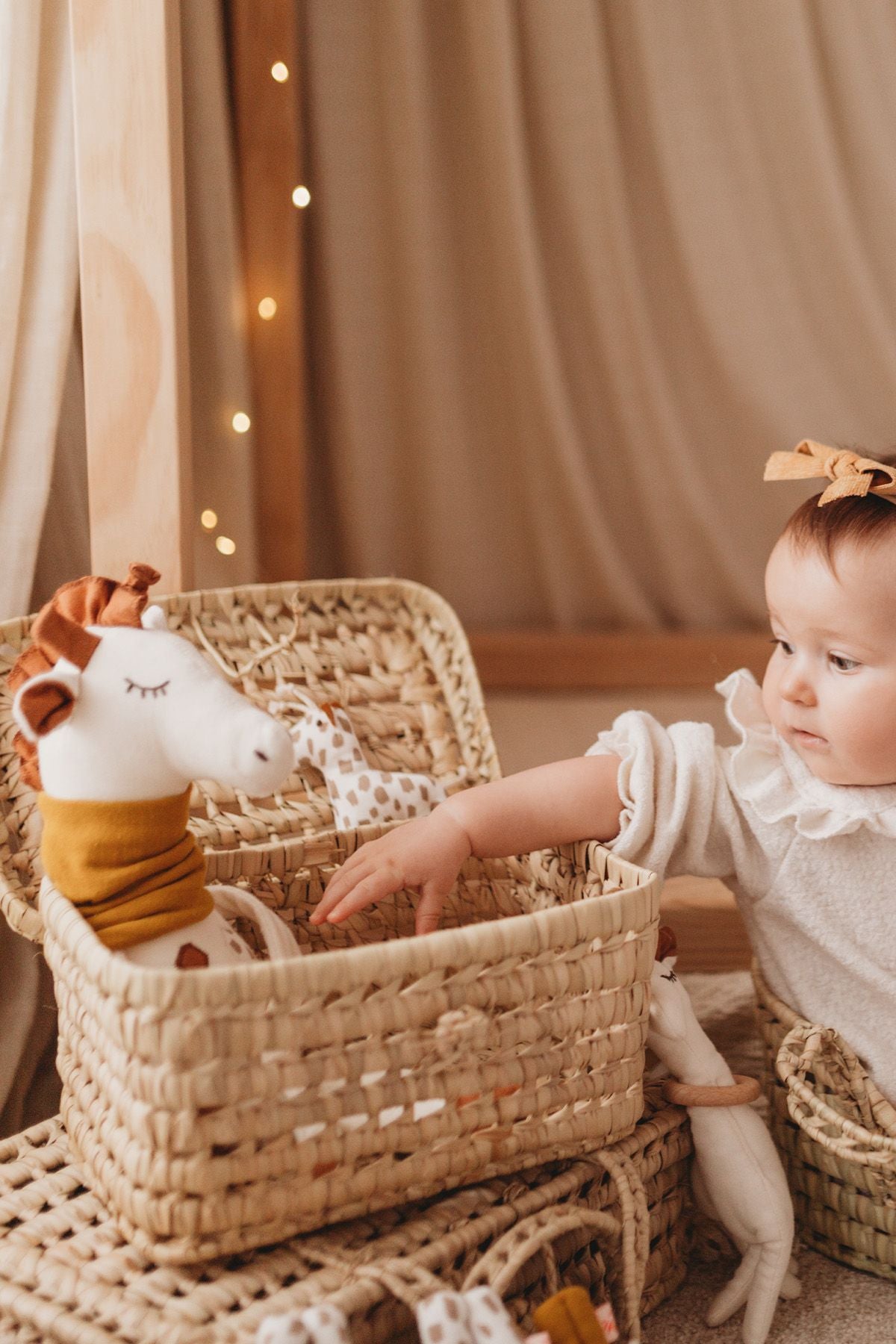 Der kleine Korb von Kikadu ist aus 100% natürlichen Palmblättern gefertigt. Er eignet sich perfekt um darin Spielzeug aufzubewahren oder als Dekoration für Kinder-, Schlaf und Wohnzimmer. Achtung: Handarbeit, es kann zu leichten Abweichungen in den Maßen kommen. - Modell: 9987101 - Material: 100% Palmblätter - Abmessung: 23x16x16cm - Pflege: mit feuchtem Tuch reinigen