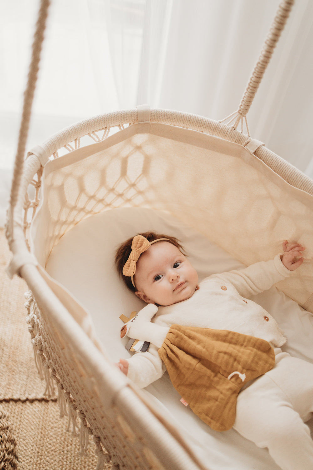 Das kleine Giraffen Schmusetuch von Kikadu, ist im Vergleich zum großen Giraffen Schmusetuch etwas kompakter und handlicher. Es hat einen kleinen Giraffenkopf und ist mit einem einlagigen Schmusestoff ausgestattet. Der Spielfaktor aber ähnlich: Zum Spielen und zum Kuscheln und da dein Baby alles gerne mit dem Mund erforscht, auch zum dran knabbern. Es ist in zwei Farbvarianten verfügbar: Olive oder Giraffenmuster. Dieser Artikel ist GOTS-zertifiziert. Maße: 30x18x3cm Pflege: Waschmaschine 30° In der Giraffen Kollektion auch als großes Schmusetuch erhältlich. Modell: 2114602 Maße: 30x18x3cm Material: 100% Biobaumwolle Pflege: Waschmaschine 30°