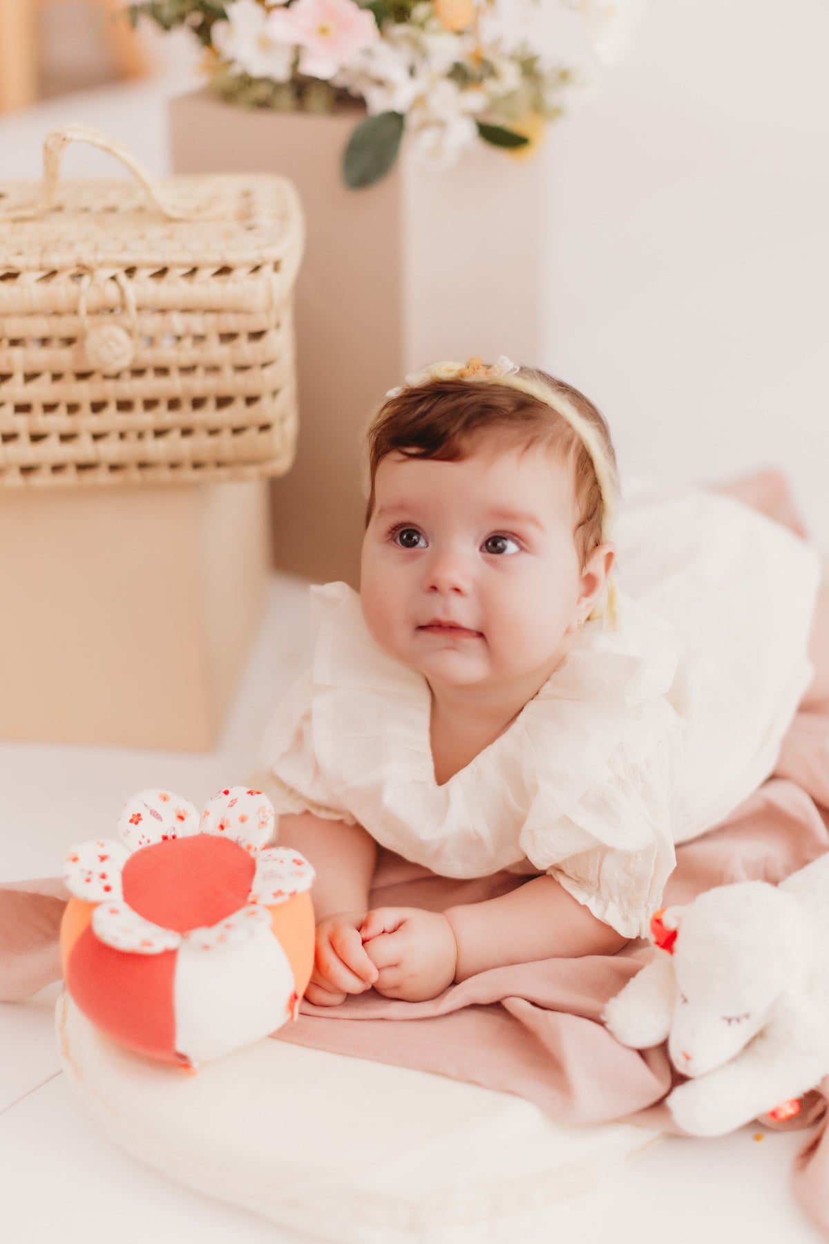 Dieser rosa gestreifte Blumen-Rasselball von Kikadu fördert auf spielerische Art und Weise die Feinmotorik deines Babys. Eine Rassel im Inneren animiert es den Ball in die Hände zu nehmen und zu schütteln. Knisterpapier in den Blütenblättern lässt dein Baby aufhorchen. Der Rasselball ist mit recyceltem Stoff aus PET-Flaschen gefüllt. Dadurch trocknet er schnell und er bleibt schön rund." Modell: 2214121 Pflege: Handwäsche Altersempfehlung: 3 Monate Material: 100% Biobaumwolle