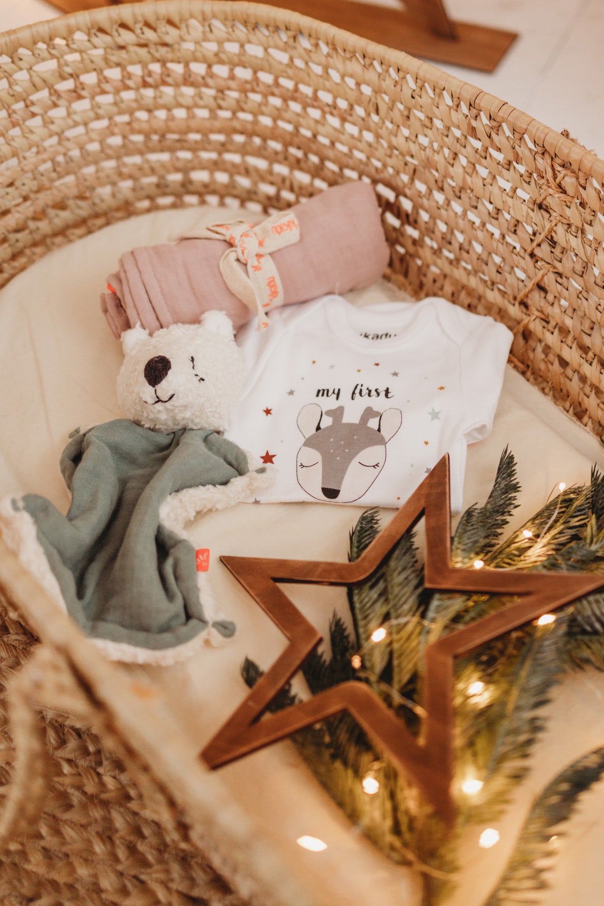 Das Schmusetuch mit Eisbären Kopf ist ein niedlicher Kuschelfreund und Tröster. Das Tuch ist weich gefüttert und die Enden sind mit kleinen Knötchen auch für ganz kleine Baby-Hände gut zu greifen. Schmusepuppen sind Freunde fürs Leben. Sie gehen mit deinem Kind durch dick und dünn. Das Schmusetuch ist aus GOTS zertifizierter Bio-Baumwolle hergestellt und mit recyceltem Polyester gefüllt. Maße: 27x20x8cm. Altersempfehlung: Ab Geburt. Pflege: Bei 30 Grad waschbar.