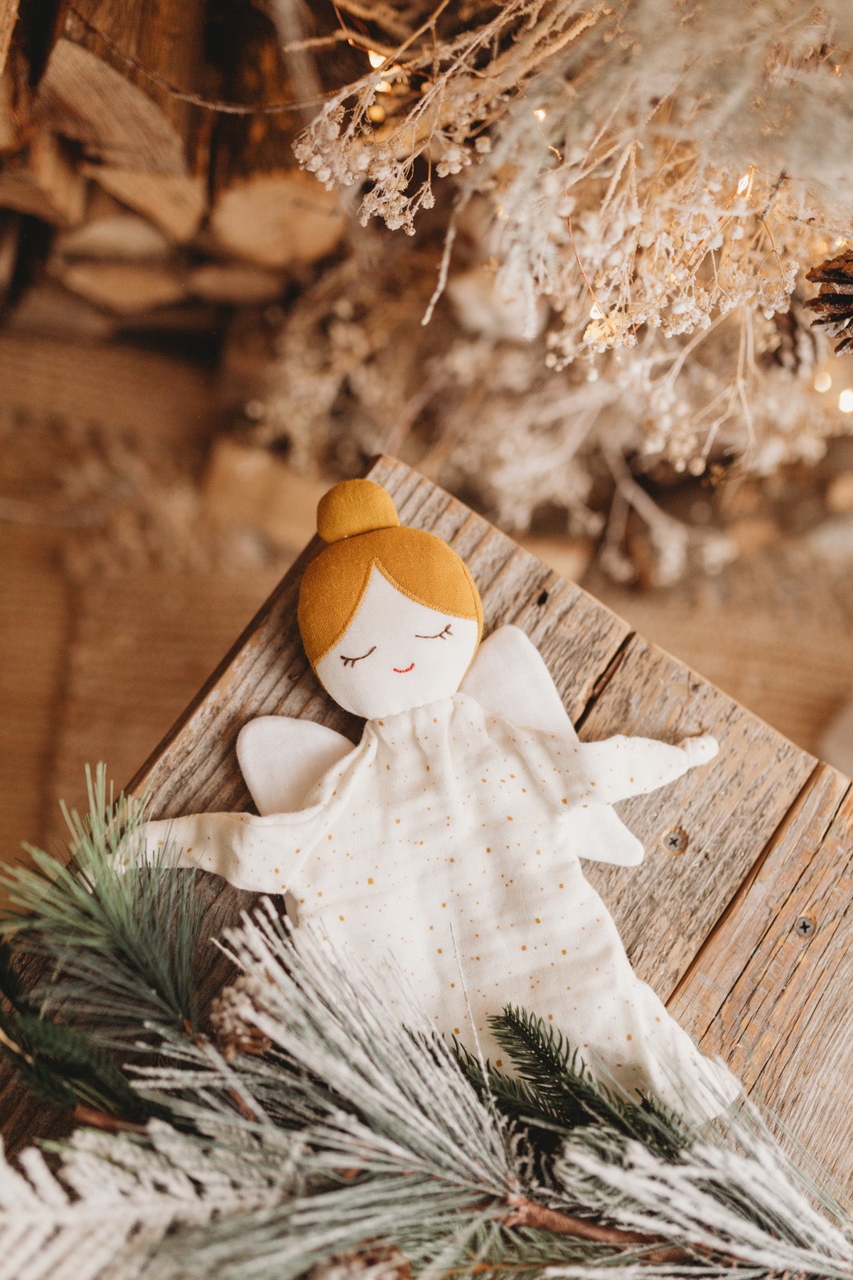 Das zauberhafte Engel-Schmusetuch von Kikadu ist so weich gefüttert, man möchte es einfach nur kuscheln. Die Ärmchen der Schmusepuppe sind besonders für ganz kleine Baby-Hände gut zu greifen. Dieser kleine Engel sorgt für Sicherheit und ein beschützendes Geborgenheitsgefühl für deinen kleinen Schatz. Er ist ein wunderbares Geschenk zur Geburt oder Taufe. Der treue Begleiter ist nicht nur schön anzusehen, er ist auch aus Bio-Baumwolle (GOTS) hergestellt und mit recyceltem Polyester gefüllt und erfüllt nur die höchsten Standards in Nachhaltigkeit und einem fairen Herstellungsprozess. Maße: 28,5x28,5x3,5cm. Altersempfehlung: Ab Geburt. Pflege: Waschbar in der Maschine 30 Grad.