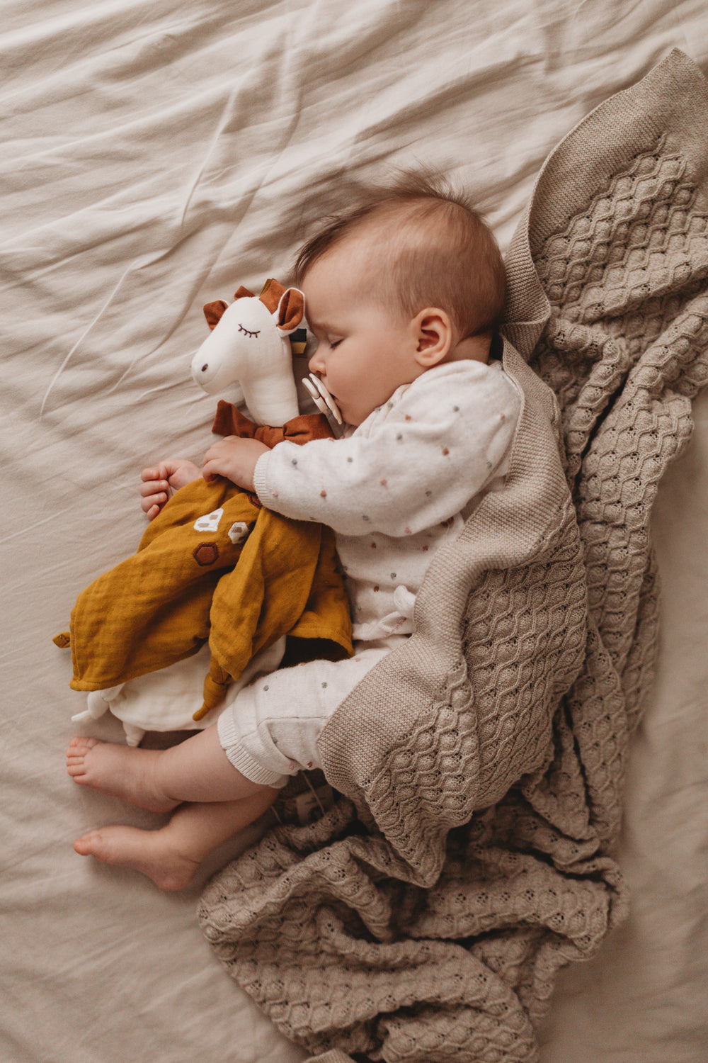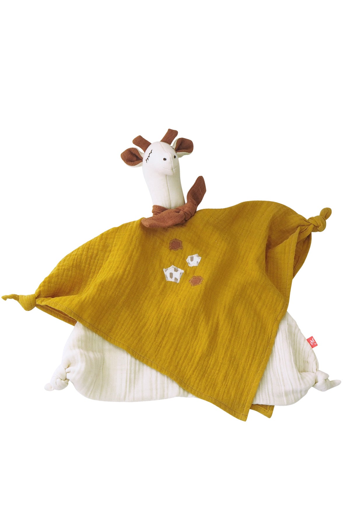 Dieses weiche Giraffen Schmusetuch kann ein unverzichtbarer Begleiter für dein Baby werden. Es ist Kuschel-, Trost- und Spielfreund und kann dein Baby überallhin begleiten. Zum Kuscheln, als Einschlafbegleiter, zum Spielen auf der Spieldecke oder wenn mal Tränchen rollen als tröstender Kuschelfreund. Dieser Artikel ist mit GOTS-zertifiziert. Altersempfehlung: 0+ Maße: 42,5x55x5,5cm Pflege: Waschmaschine 30° In der Giraffen Kollektion sind auch kleine Schmusetücher erhältlich. Modell: 2114601 Altersempfehlung: 0+ Maße: 42,5x55x5,5cm Material: 100% Biobaumwolle Pflege: Waschmaschine 30°