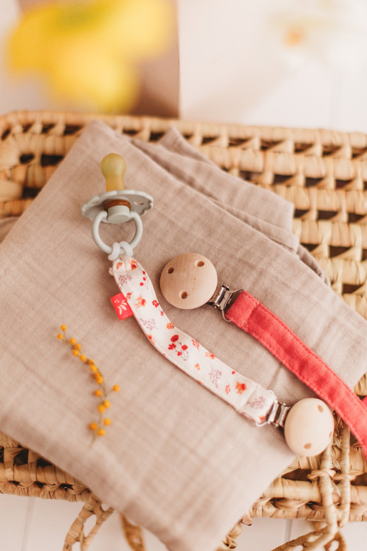 Wenn dein Baby immer wieder den Schnuller verliert oder in sogar absichtlich ausspuckt, dann sind die Schnullerketten von kikadu aus Musselin ein praktisches Accessoire, das verhindert, dass kein Schnuller mehr verloren geht oder gar im Dreck landet. Sie können ganz einfach mit einem Clip befestigt werden. Die wunderschönen Schnullerketten sind in verschiedenen Designs erhältlich. Maße: ca. 16 cm Material: Holz und 100% Baumwolle Pflege: Feucht abwischbar Für die Sicherheit Ihres Kindes VORSICHT! Kontrollieren Sie den Schnullerhalter vor jedem Gebrauch. Werfen Sie ihn beim ersten Anzeichen von Beschädigungen oder Mängeln sofort weg! Verlängern Sie niemals den Schnullerhalter! Befestigen Sie den Schnullerhalter niemals an Schnüren, Bändern, Trägern oder losen Teilen der Kleidung. Ihr Kind kann sich damit erdrosseln. Modell: 9915221 Maße: ca. 17 cm Material: 100% Biobaumwolle und Holz Pflege: Mit einem feuchten Tuch abwischen Für die Sicherheit Ihres Kindes VORSICHT! Kontrollieren Sie den Schnullerhalter vor jedem Gebrauch. Werfen Sie ihn beim ersten Anzeichen von Beschädigungen oder Mängeln sofort weg! Verlängern Sie niemals den Schnullerhalter! Befestigen Sie den Schnullerhalter niemals an Schnüren, Bändern, Trägern oder losen Teilen der Kleidung. Ihr Kind kann sich damit erdrosseln.