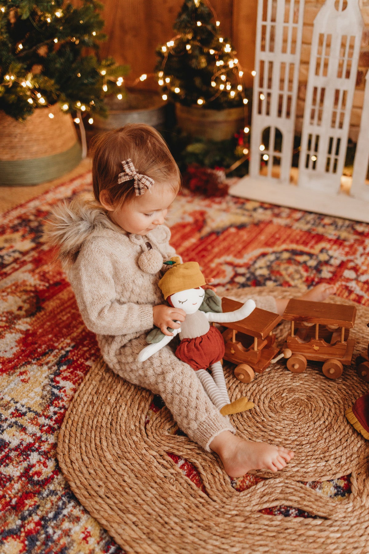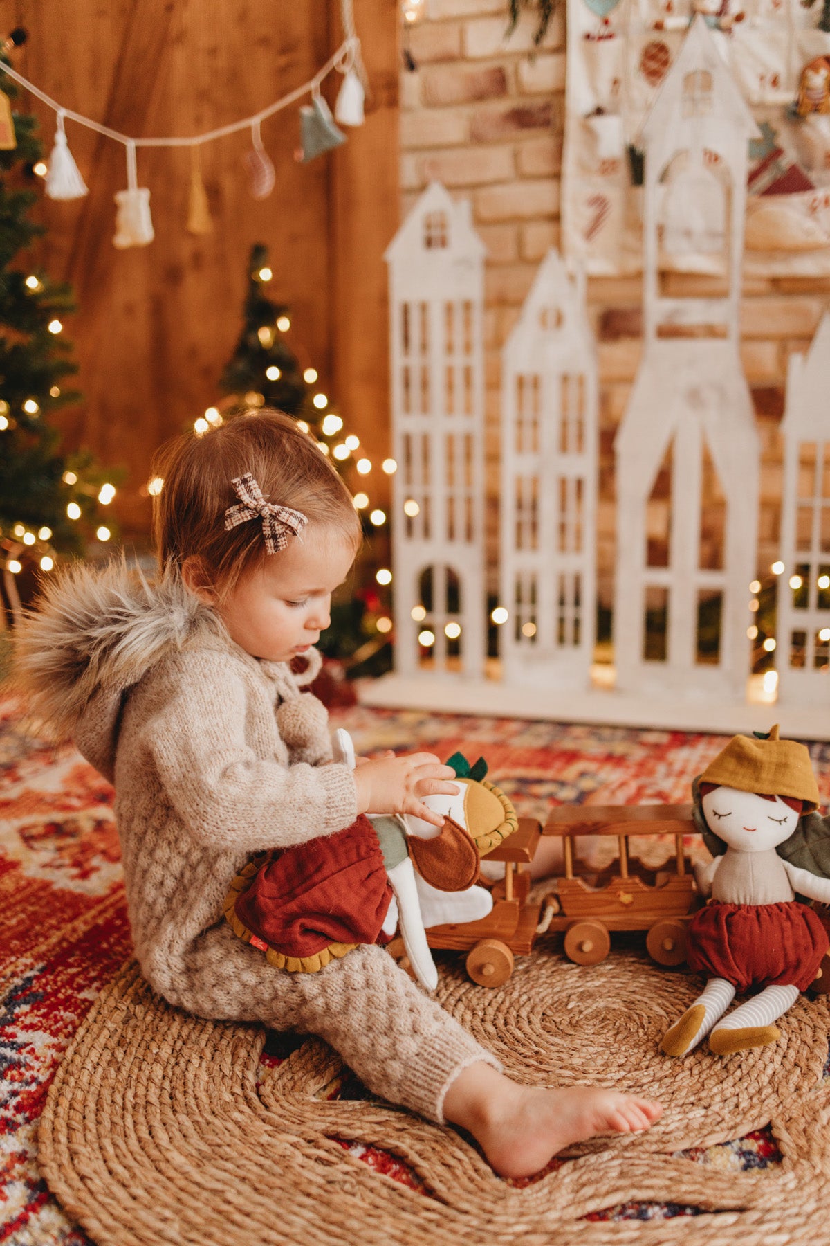 Diese zauberhafte Wald-Elfe von Kikadu ist genau das richtige für Kinder, die gerne in der Natur herumstrolchen. Die kleine Wald-Elfe kennt sich in der Natur besonders gut aus und hilft deinem Kind, das eine oder andere Waldgeheimnis zu lüften. Die Waldelfen-Puppe hat wunderschöne Naturfarben, mit denen sie sich im Wald tarnen kann. Dazu ist sie kuschelweich, eine wunderbare Freundin und Seelentrösterin, die sich auch gerne umarmen lässt. Mit ihr kann man richtig spielen, sie an- und ausziehen. Die Stoffpuppe Wald-Elfe ist aus GOTS zertifizierte Bio Baumwolle und innen mit weichen recycelten Polyesterfasern gefüllt. Modell: 9515613 Maße: 37x29x4,5cm Altersempfehlung: Ab Geburt Material: 100% Biobaumwolle Pflege: In der Maschine waschbar bei 30°.