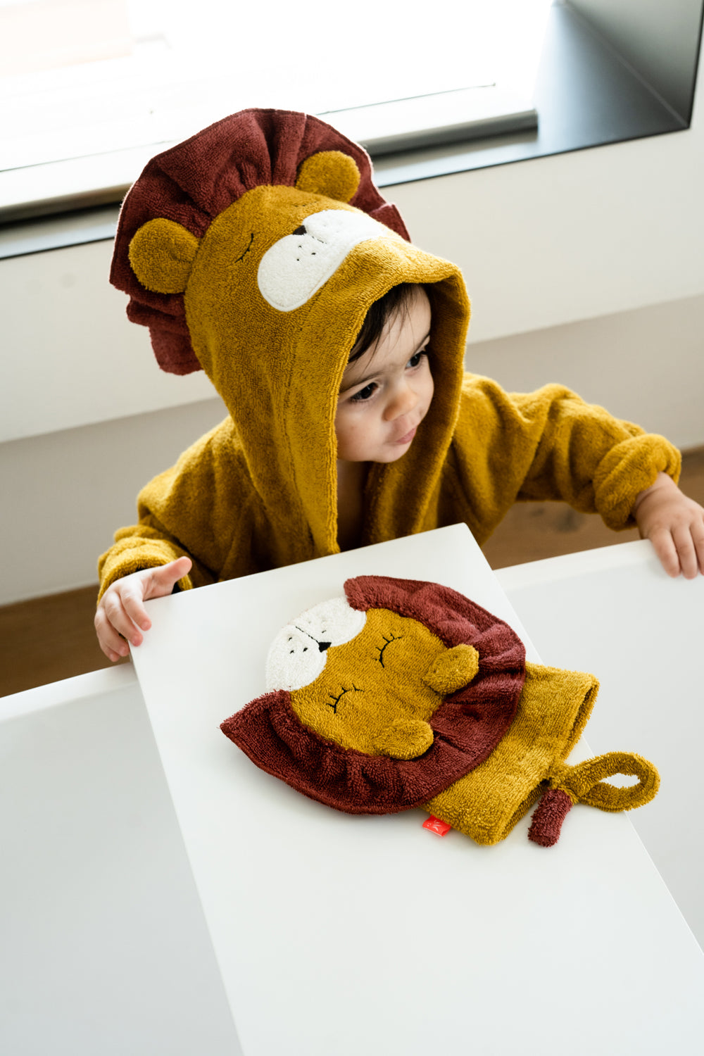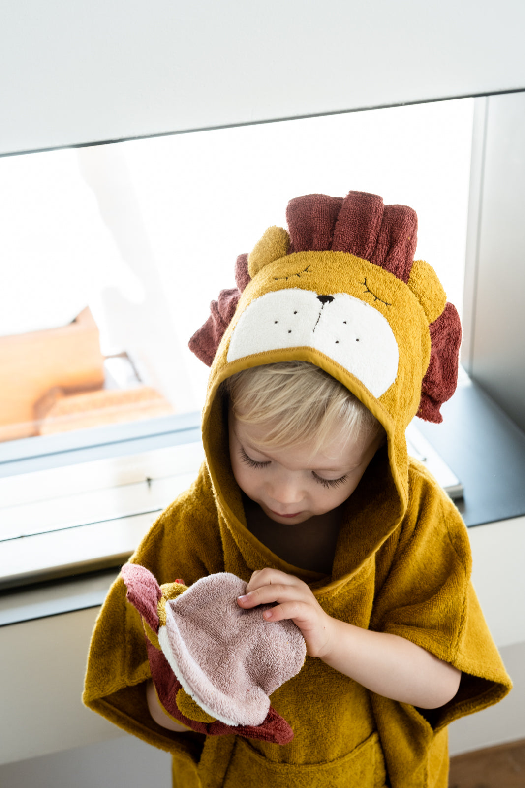 Der süße Löwen-Waschlappen von Kikadu ist aus 100% GOTS zertifizierter Bio-Baumwolle gefertigt und sorgt für Riesenspaß in der Badewanne und beim Waschen! Mit dem niedlichen Löwen-Gesicht wird das tägliche Waschen zum Vergnügen und Haarewaschen ein Kinderspiel. Weitere passende Artikel der Löwen-Serie von Kikadu findest du ebenfalls bei uns im Onlineshop. In Kombination mit einem süßen Handtuch eine tolle Geschenkidee für kleine Kinder oder werdende Eltern. Zertifikat: GOTS Herkunftsland: Türkei Interne Referenz: 2016301 Maße: 20x14cm Pflege: Maschinenwäsche 40°; Bügeln bei mittlerer Hitze